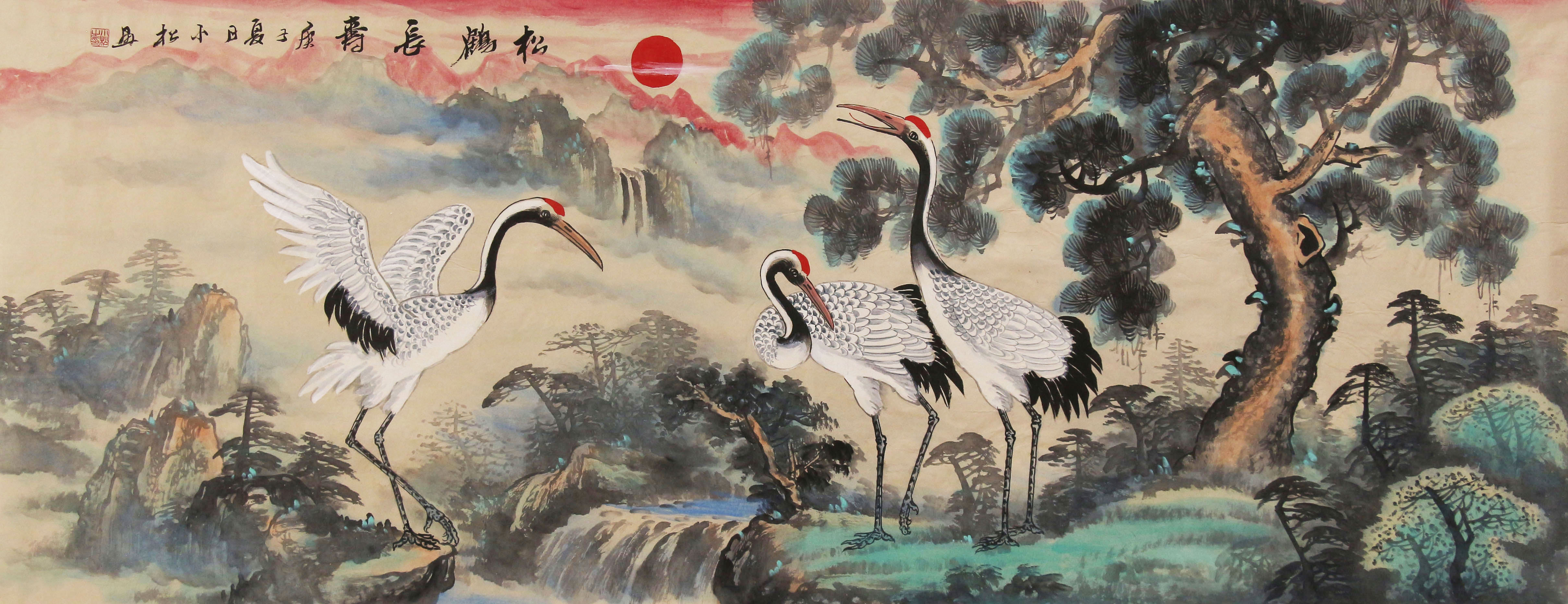 广西美术家协会会员 蒋小松 松鹤延年 小六尺